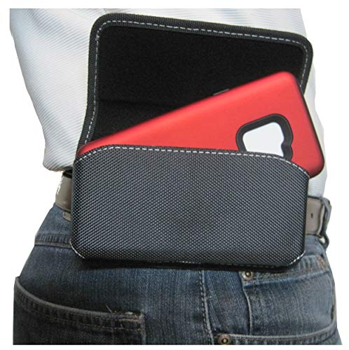 Review Mgbca Nylon Cell Phone Pouch for Galaxy S9 Plus / S8 Plus / S7Edge, Phone Belt Holder, Rugged, Magnetic Closure, Compatible with Slim-Fit Or Bulky Case On Smartphone (Black-Sideways)
